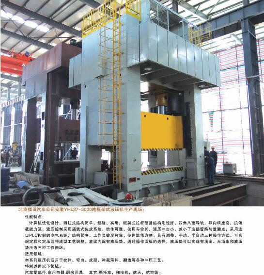 公司能夠?yàn)槭袌?chǎng)提供42大類500余個(gè)品種的標(biāo)準(zhǔn)液壓機(jī)和非標(biāo)專用、精密伺服液壓機(jī)。產(chǎn)品廣泛應(yīng)用于汽車、航天、粉末冶金、船舶、輕工、建筑、電子、家用電器等行業(yè),并代表著我國(guó)通用液壓機(jī)的發(fā)展水平。公司生產(chǎn)、設(shè)計(jì)、開(kāi)發(fā)的液壓機(jī)產(chǎn)品完全能夠滿足國(guó)內(nèi)不同用戶多層次的需要。